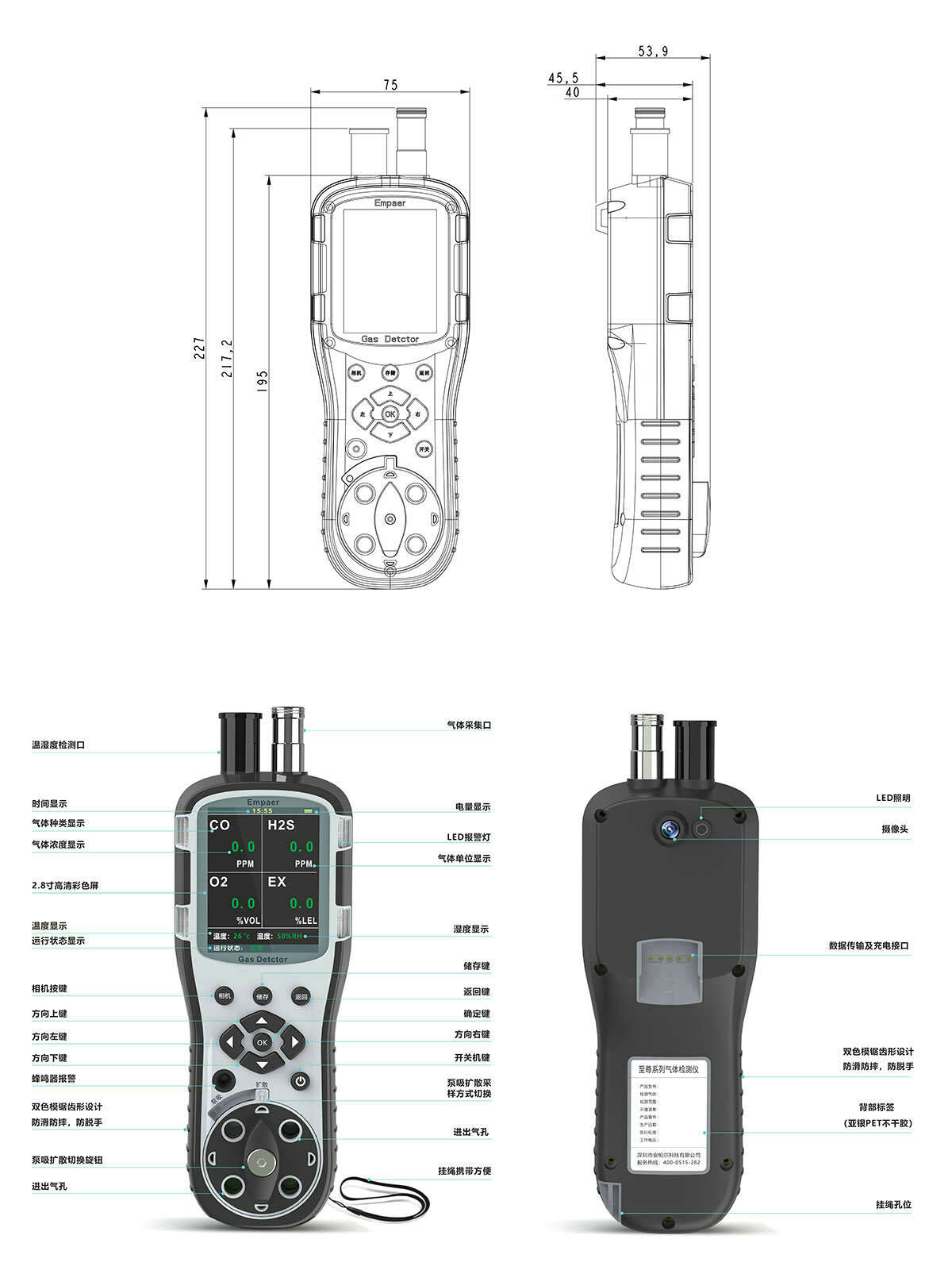 核心特點:高端、功能強大、可拍照攝像、可照明、泵吸和擴散采樣模式切換簡單、網絡版儀器設備、雙色模防滑防脫手設計;