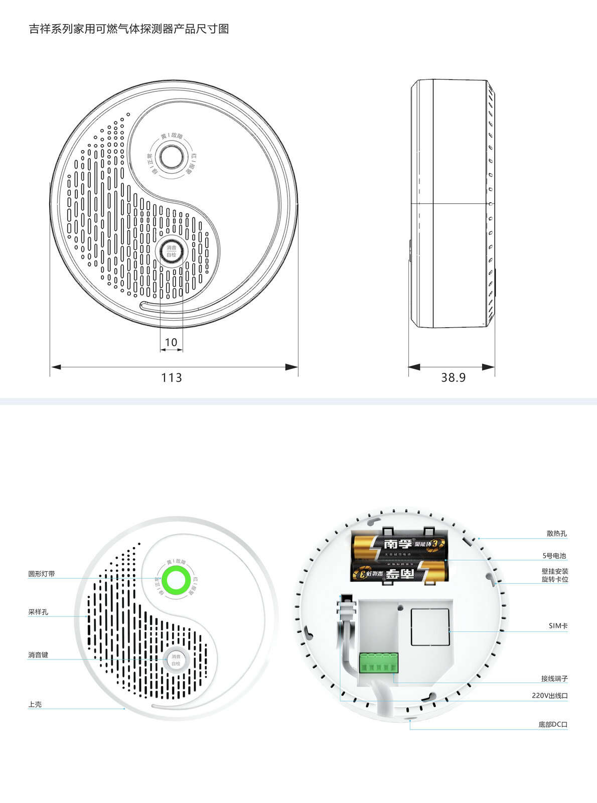 ☆ 提供12V直流、220V交流、堿性干電池三種供電方式,適應(yīng)不同家庭環(huán)境,無需依賴固定電源,安裝便捷。